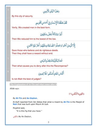 Tafsir Surat At-Tiin Menurut pendapat jumhur ulama surat At-Tiin adalah surat Makiyyah yang diturunkan kepada Nabi shalallahu alaihi wasallam sebelum berhijrah ke kota Madinah. التين is the 95th chapter of the Quran. Read Tafsir al-Tabari for Ayah 4 of Surah At-Tin.